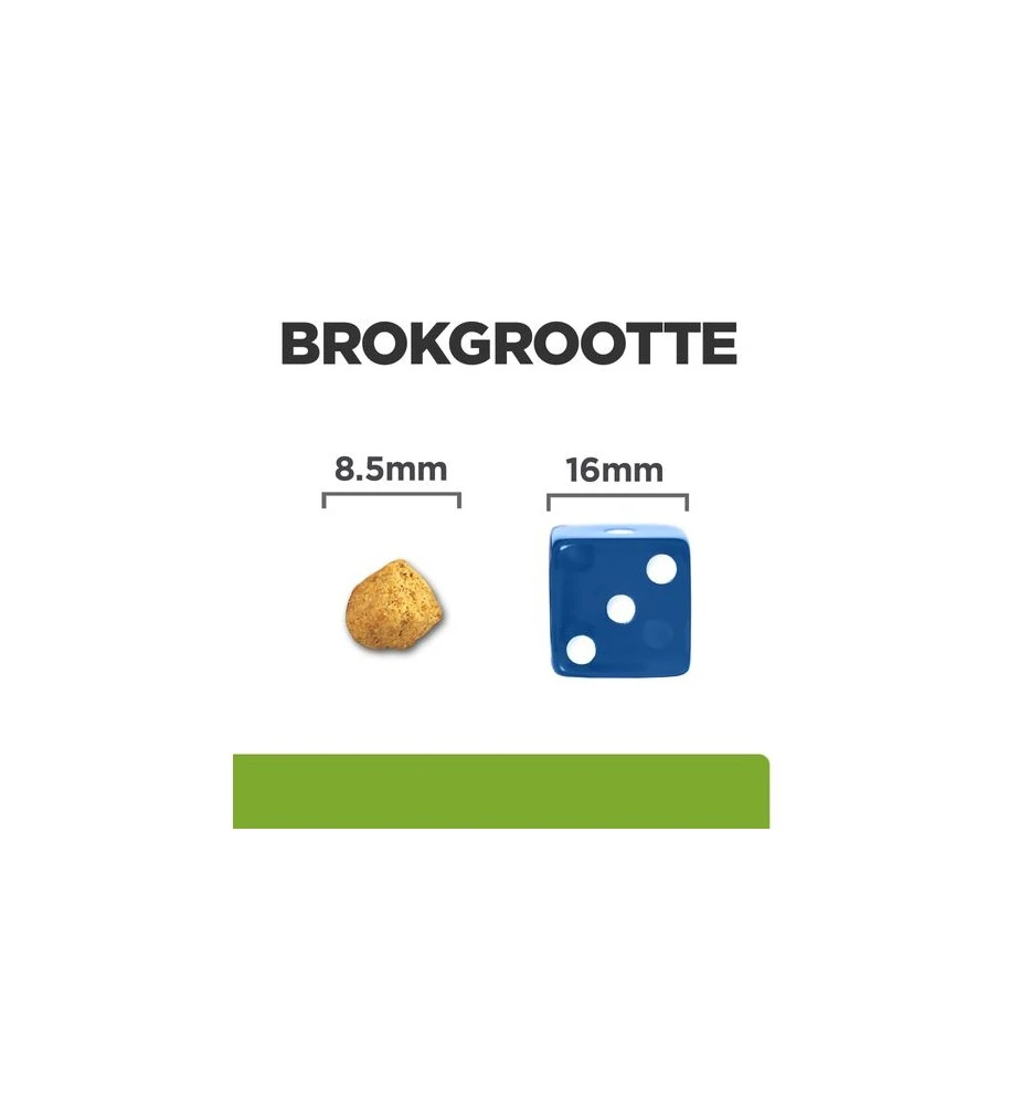 Kip- (23%) en kalkoenmeel, Maïsglutenmeel, Brouwersrijst, Cellulose, Tomatenpuree, Bietenpulp, Lijnzaad, Kokosnootolie, Eiwithydrolysaat, Dierlijk vet, Mineralen, Visolie, Gedehydreerde wortelen, Vitaminen, Taurine, Sporenelementen en bèta-caroteen. Natuurlijk geconserveerd met gemengde tocoferolen.